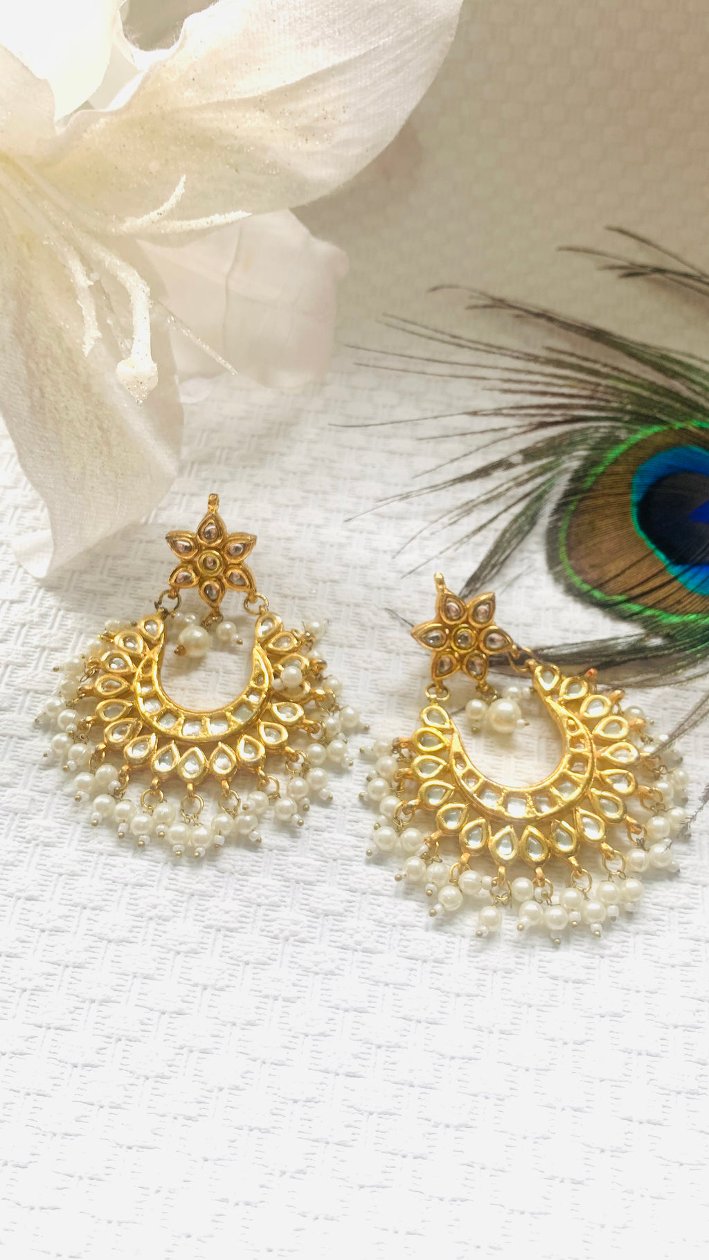 ✨ Kundan & Cluster Moti Chandbali Earrings with Tikka Set ✨